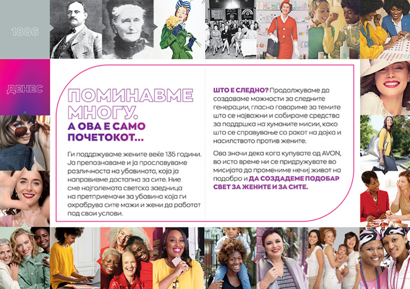 Видео кампањата по повод 135 години AVON можеш да се погледне тука: AVON WMN Manifesto 2.0.